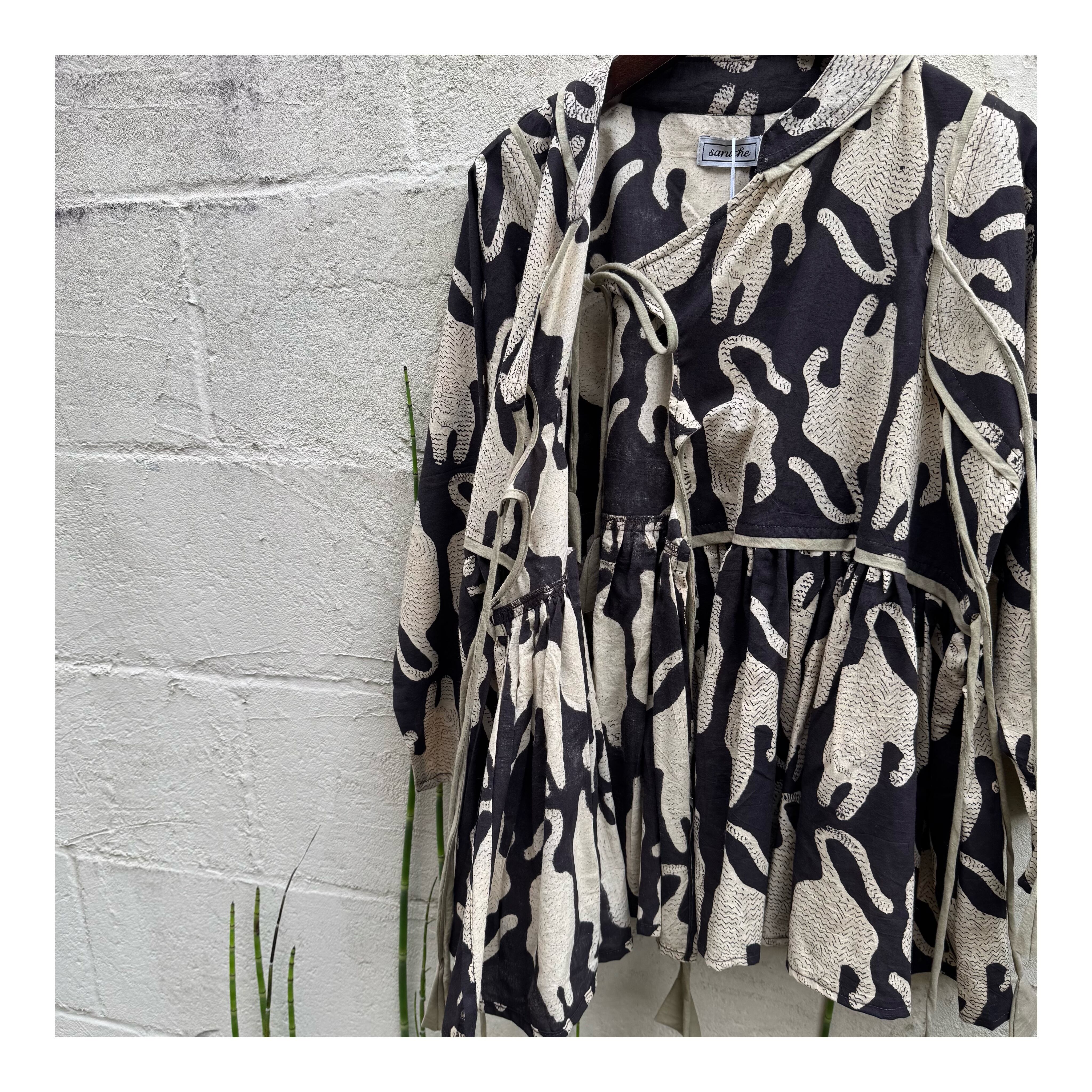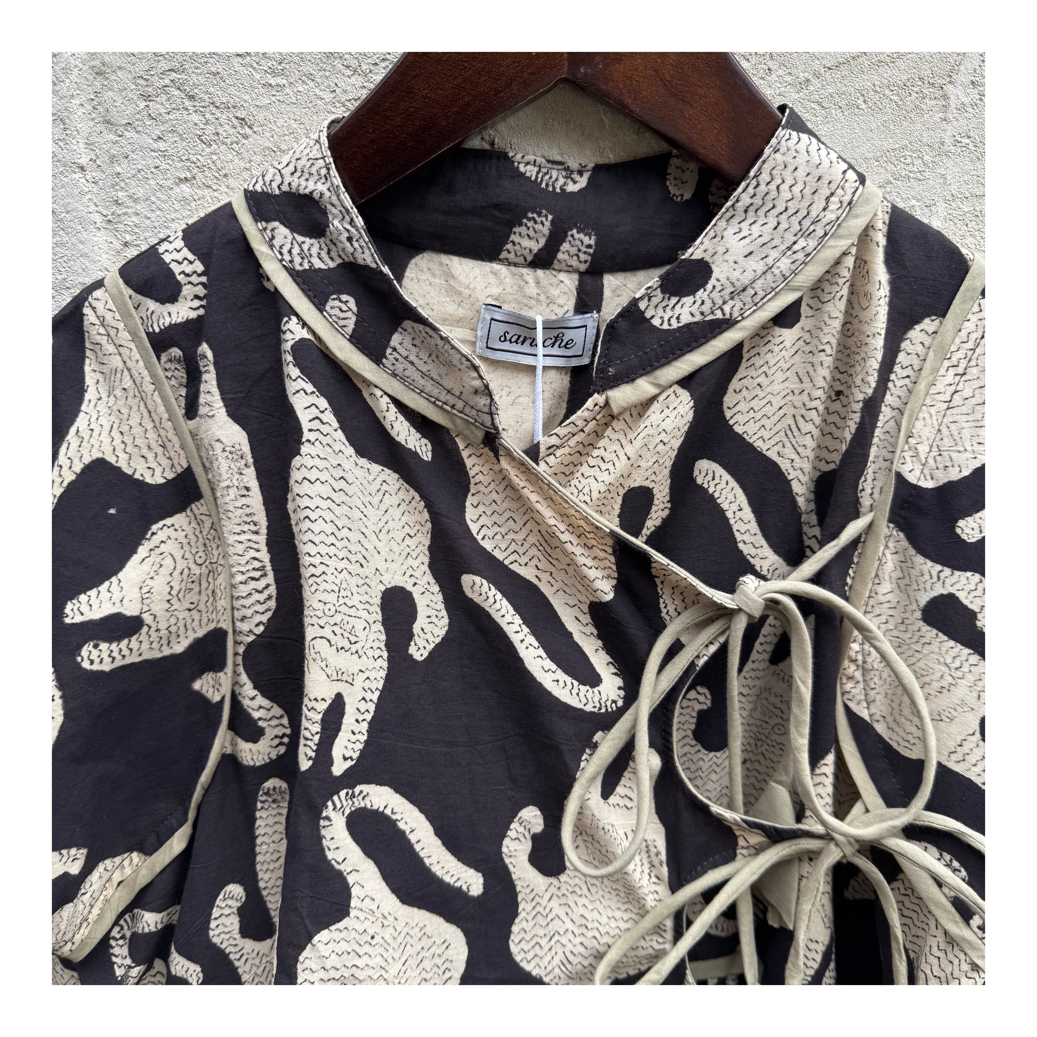 仕様的にも縫うのも時間がかかり、パイピングや紐、タッセルも全て手作りの温かいチュニックシャツ‼︎