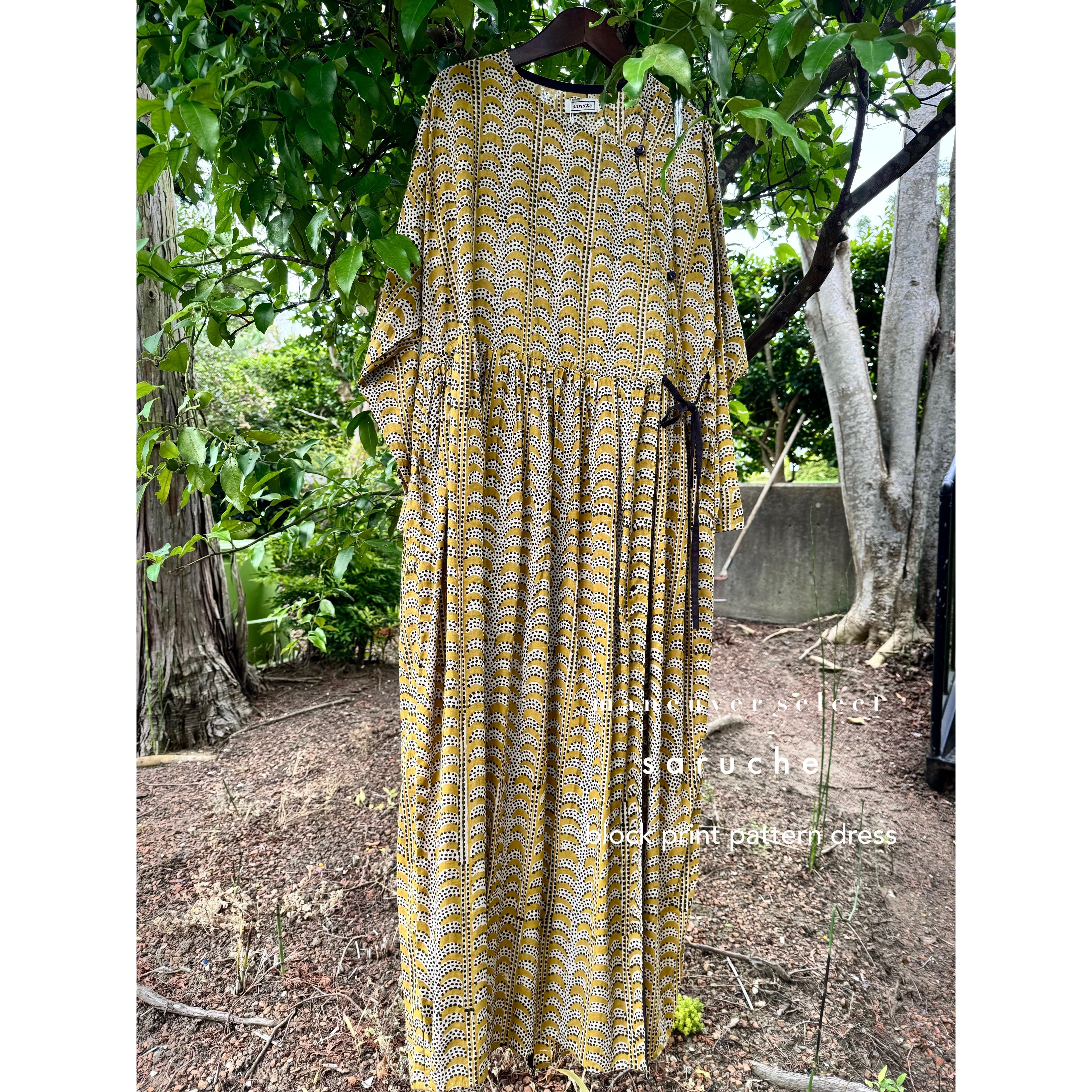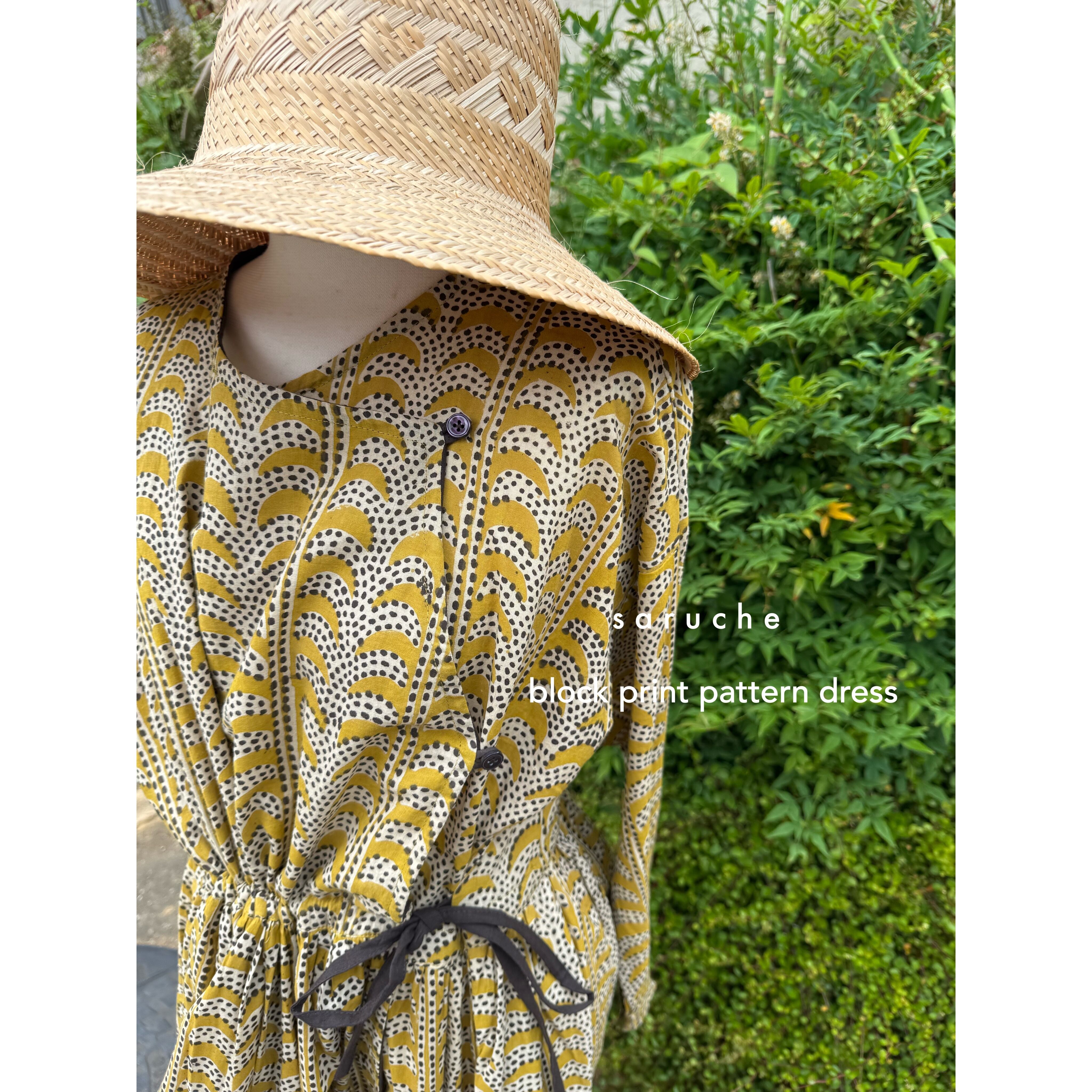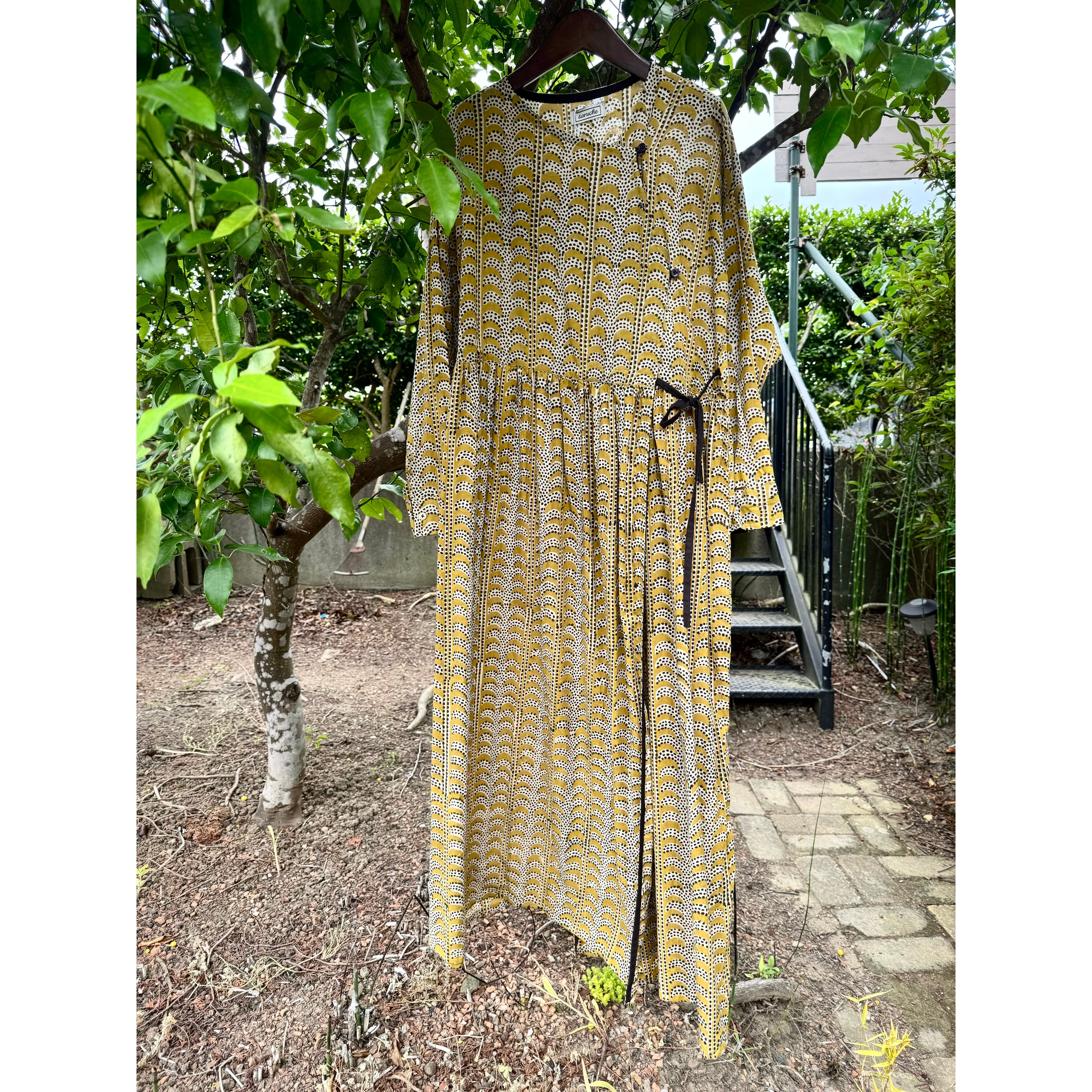 インド綿 柄 ワンピース ブロックプリント
