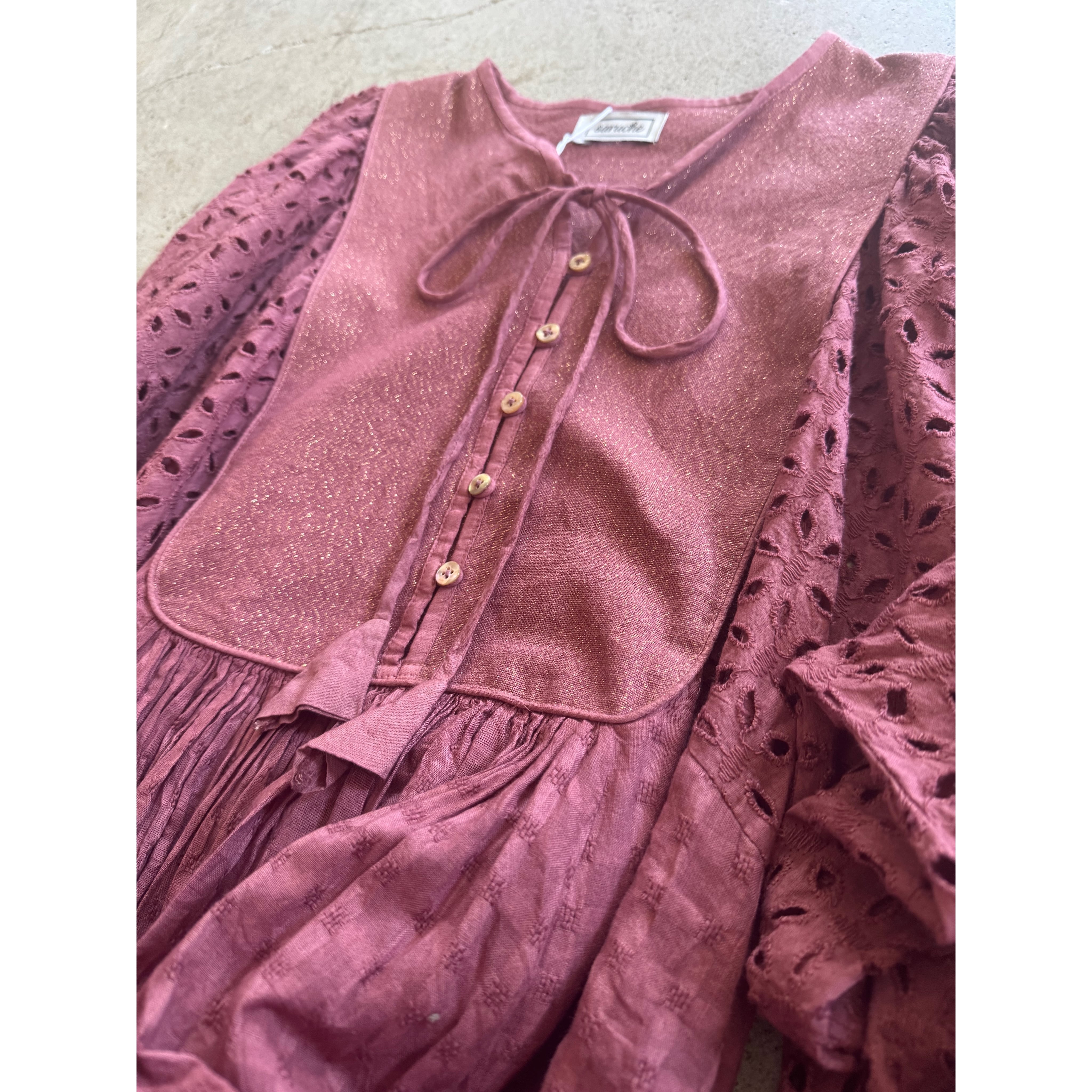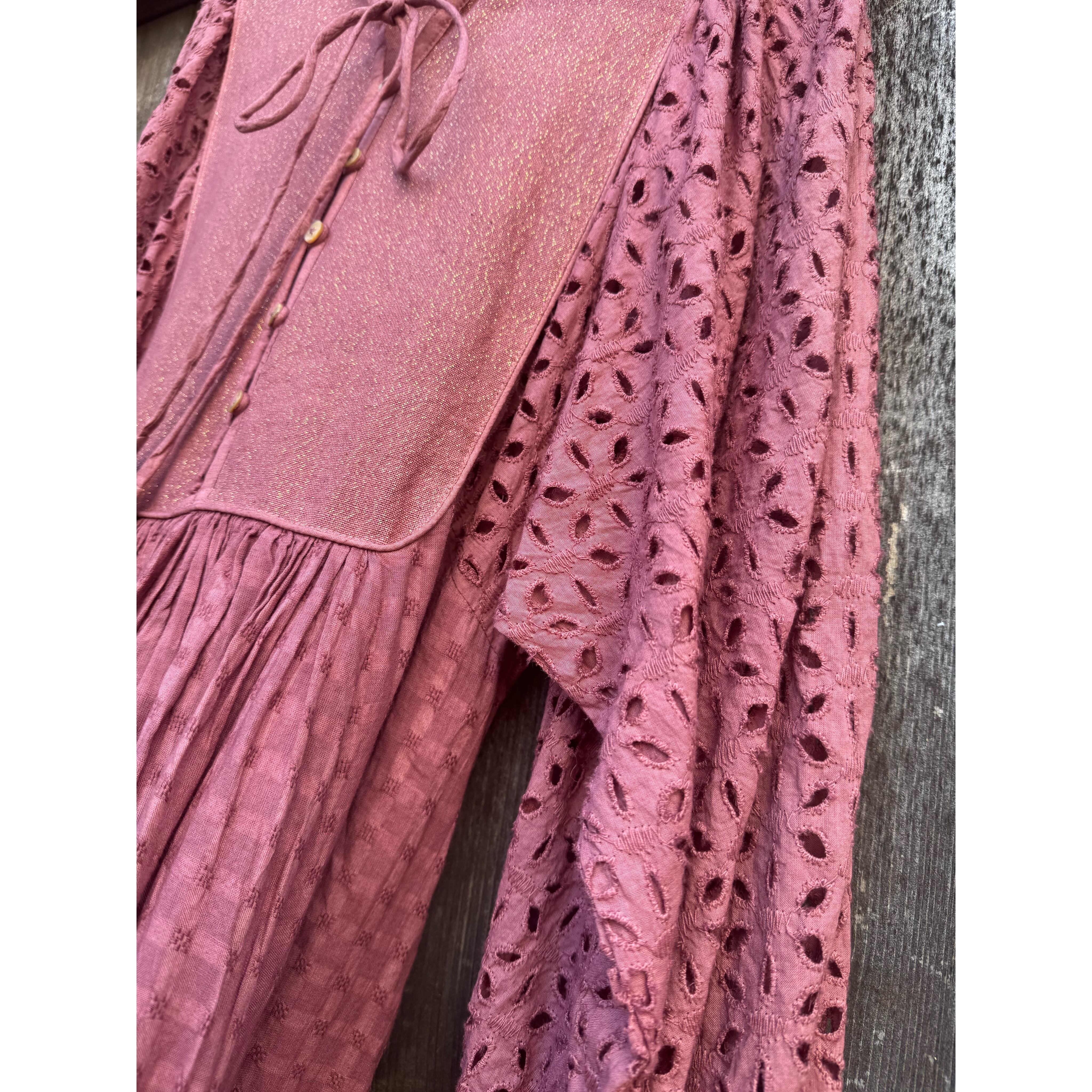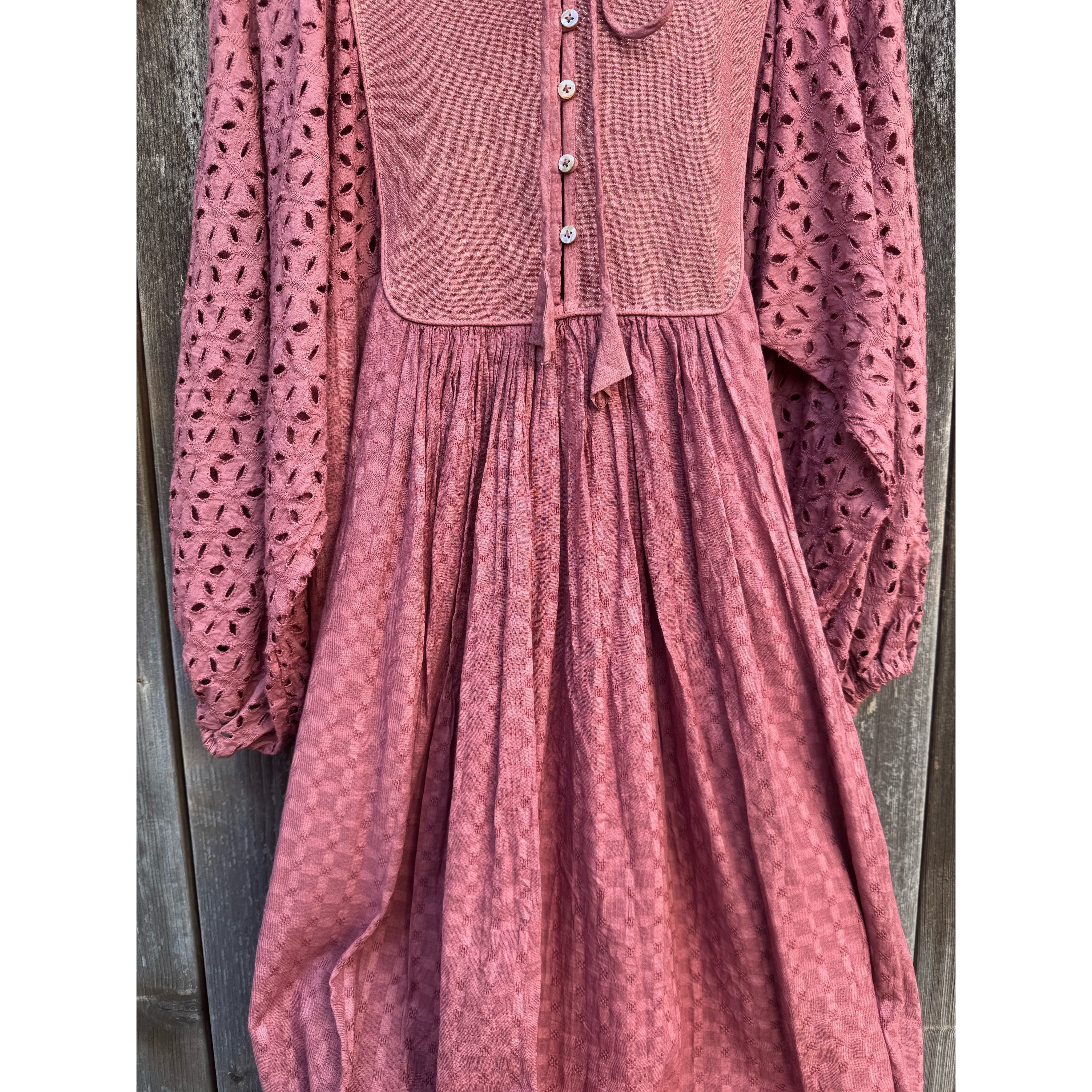 カットワークの生地はしっかりボリュームがあるので冬でも着れるインド綿ワンピース。