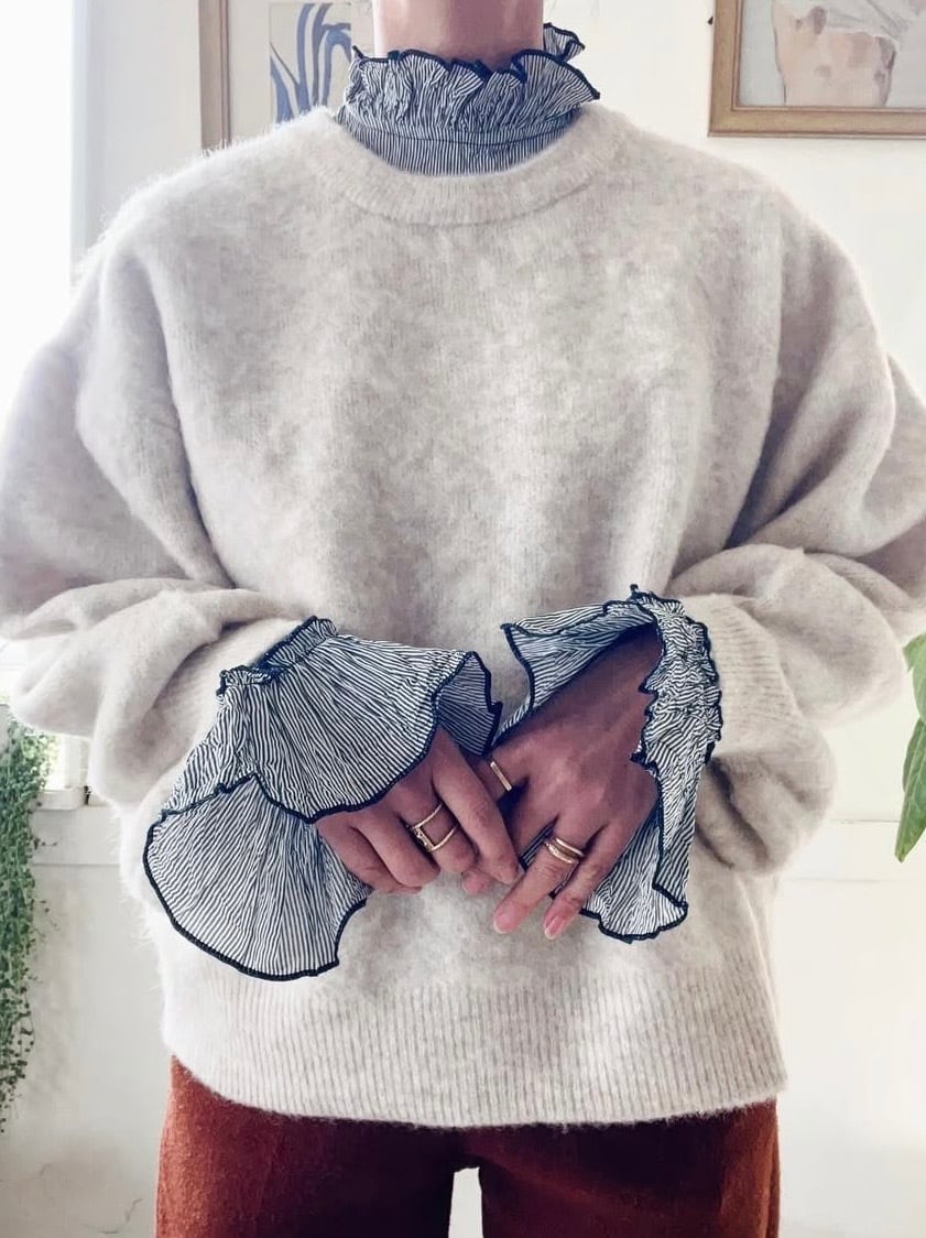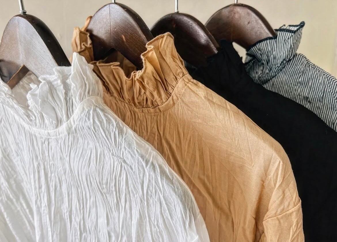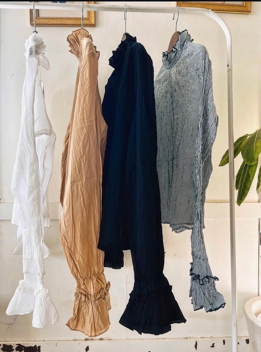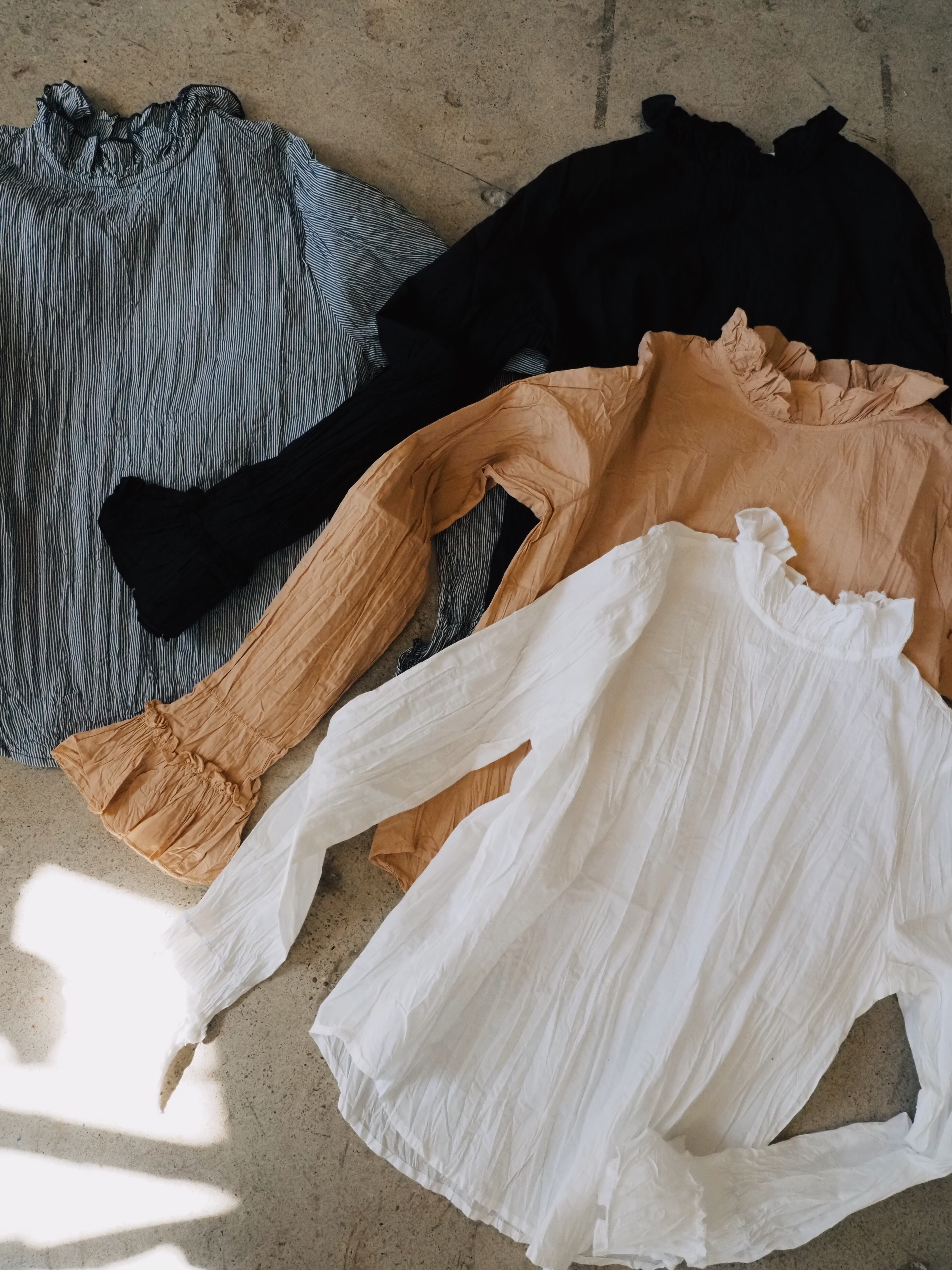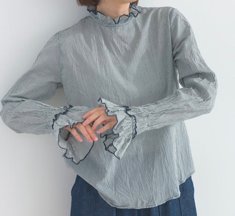 普段使いからオフィスカジュアル、卒入学など幅広いシーンでの活躍間違いなしのフリルブラウスです。