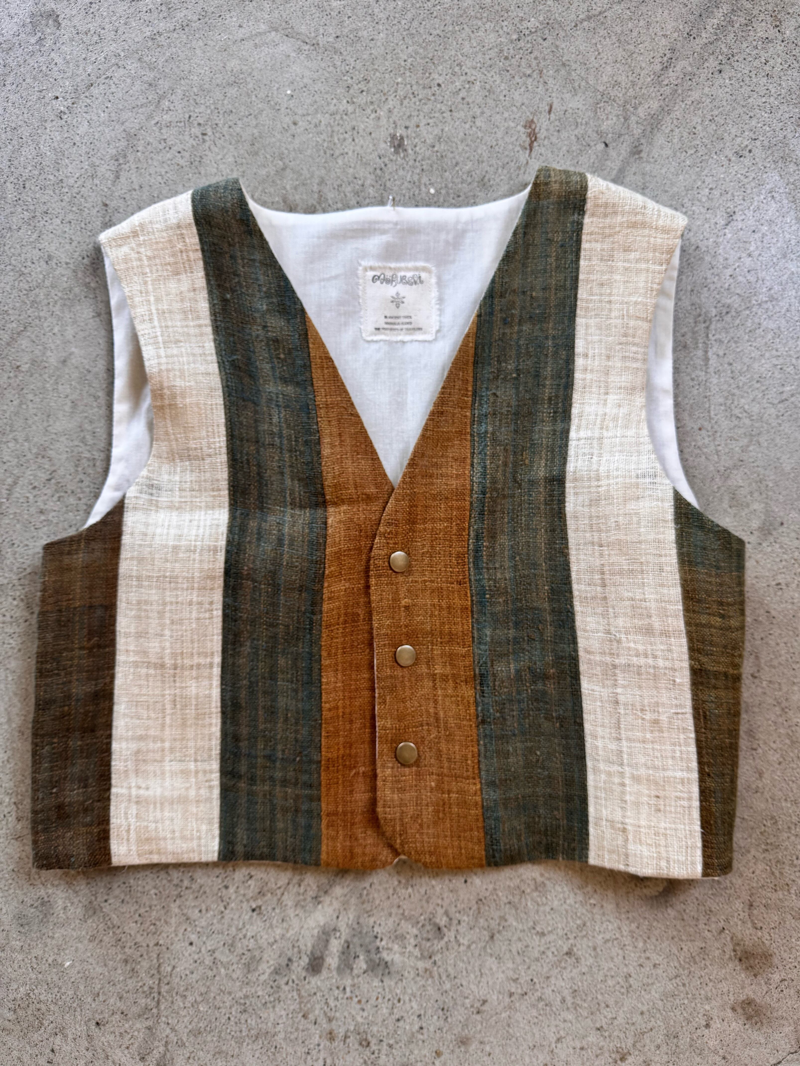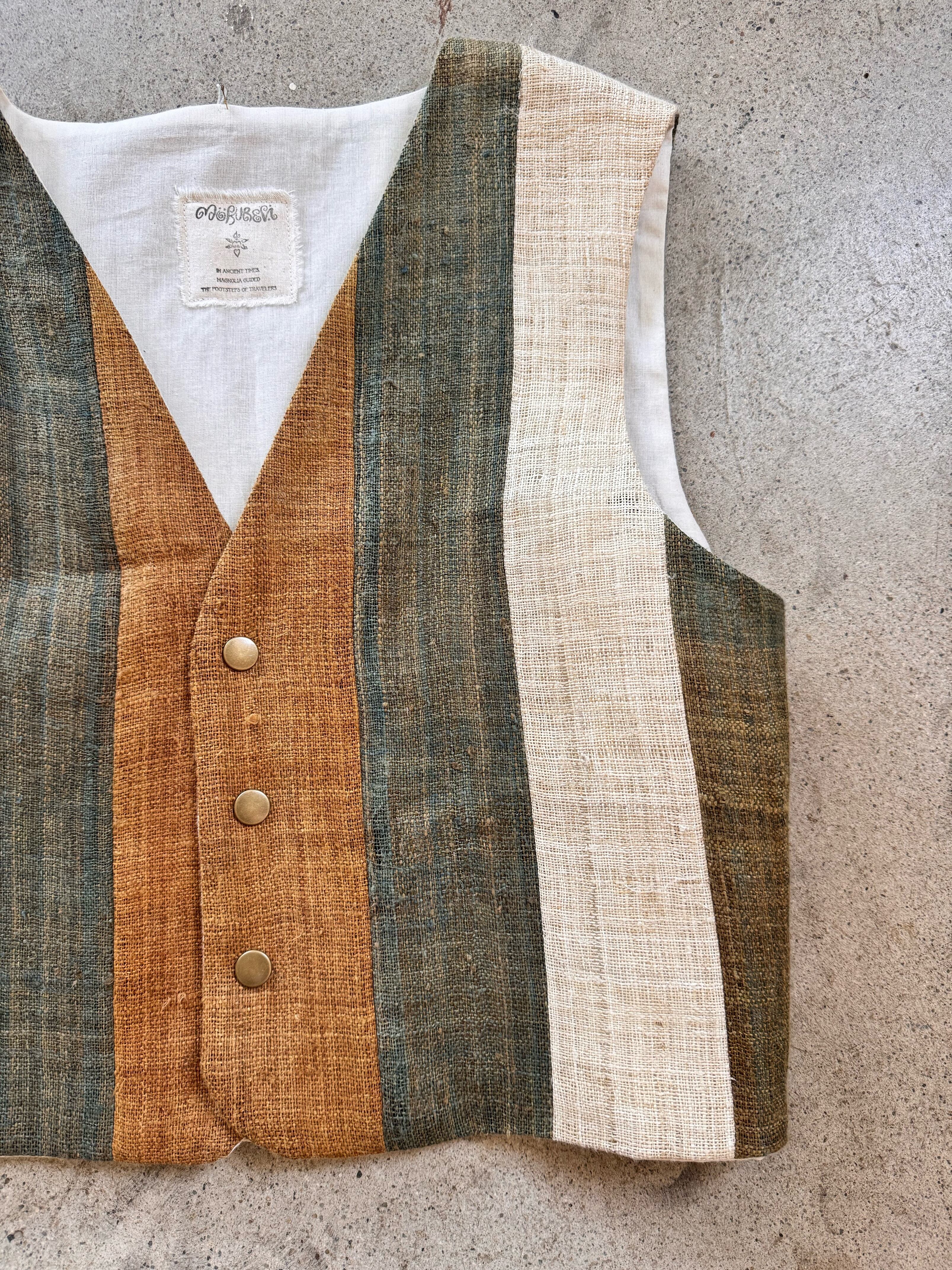 special order linen vest stripe < ivory × khaki × camel >