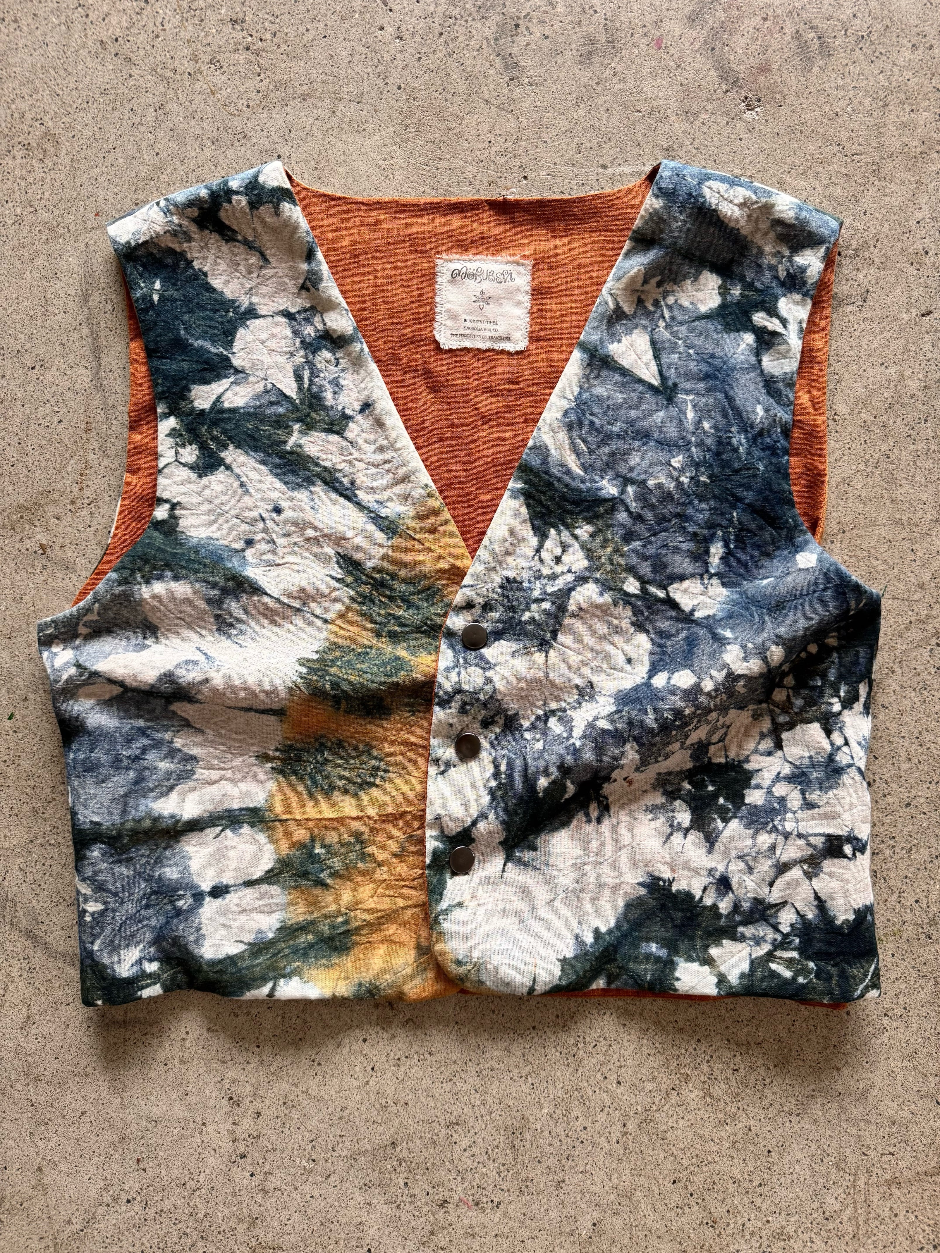 special order linen vest tie-dye < blue >