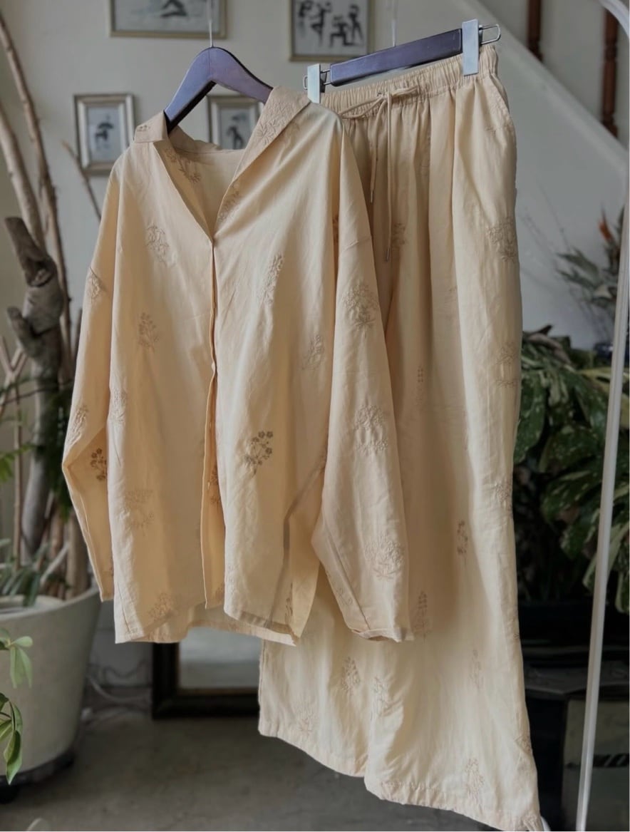 刺繍デザインコットンローン素材セットアップ
